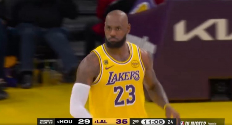手热!詹姆斯中投空心命中 率队牢牢占据场上主动
